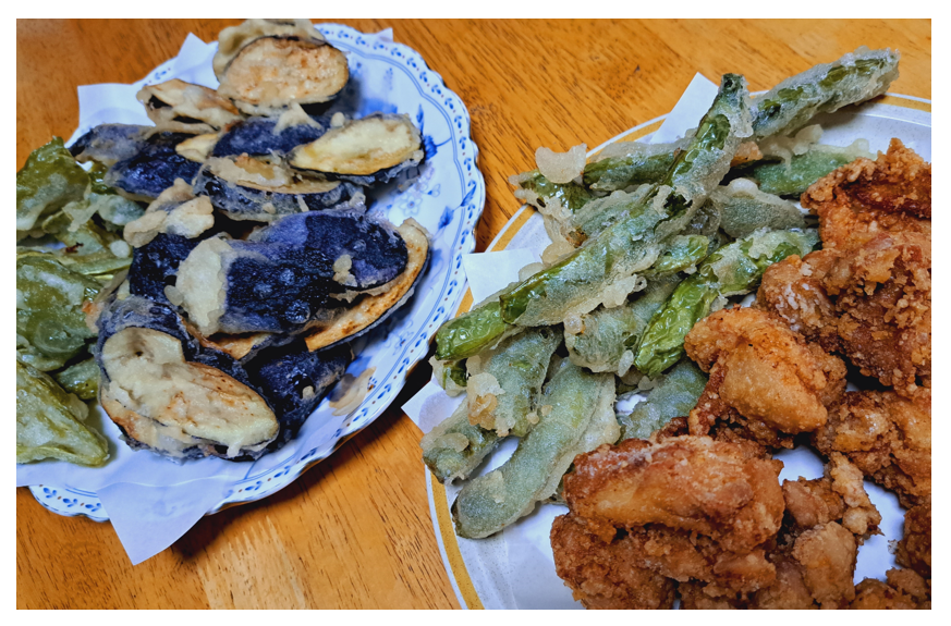 私は地元に帰省し、恒例行事てんぷらを揚げました!