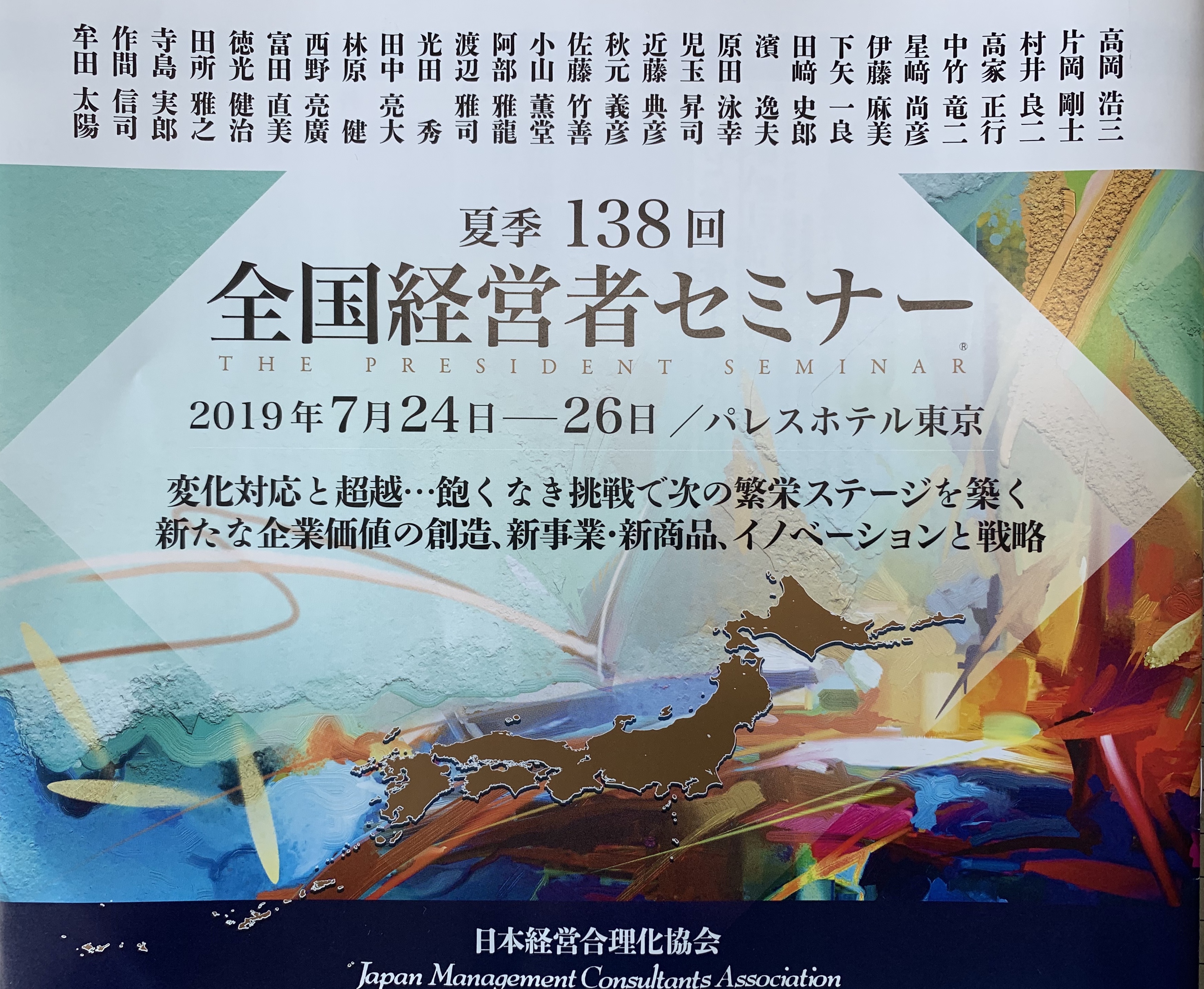 2019年7月24日(水)~26日(金)にパレスホテル東京で行われます、『夏季138回 全国経営者セミナー』にて弊社代表取締役の伊藤麻美が講演をいたします(25日9:15~)。https://www.jmcatop.jp/seminar/latest.html